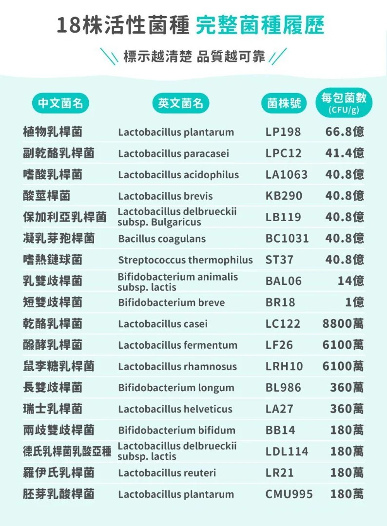 18種多元活菌能有效改變菌叢生態、調整好體質